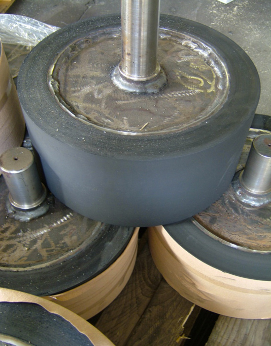 One-piece pressing rollers in stainless steel and rubber, produced according to the Customer’s specifications.